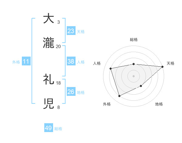 大瀧 礼児さんを姓名の画数から五運を鑑定