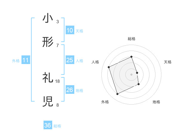 小形 礼児さんの地格は26画の2点!