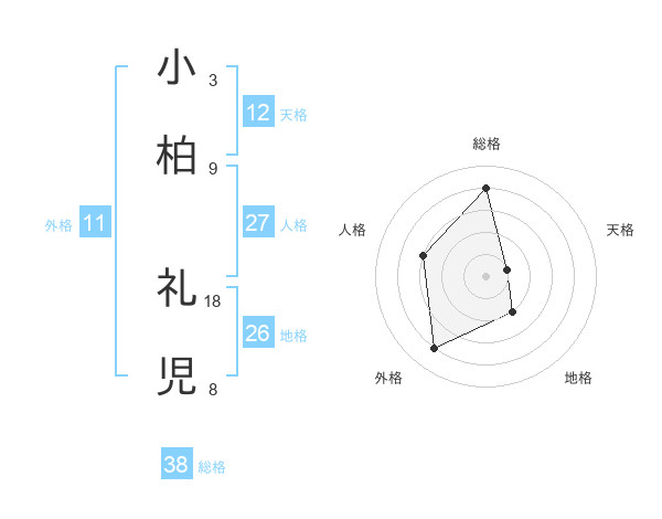 小柏 礼児さんを姓名の画数から五運を鑑定