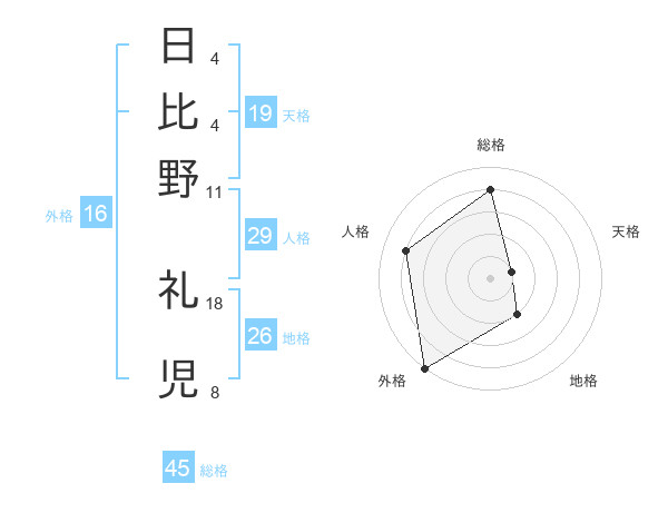 日比野 礼児さんを姓名の画数から五運を鑑定