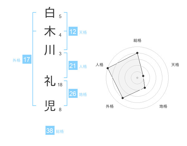 白木川 礼児さんの総格は38画の4点!