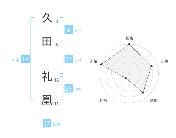 久田 礼凰さんを姓名の画数から五運を鑑定