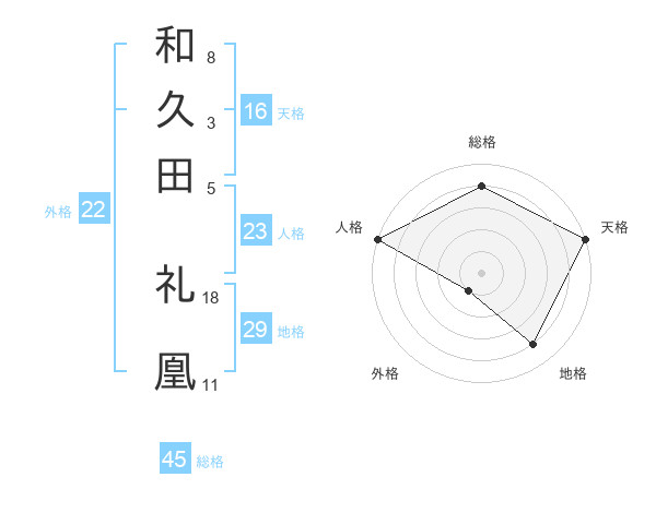 和久田 礼凰さんの総格は45画の4点!
