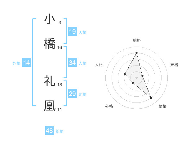小橋 礼凰さんを姓名の画数から五運を鑑定