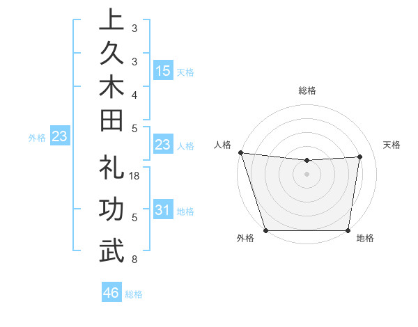 上久木田 礼功武さんを姓名の画数から五運を鑑定
