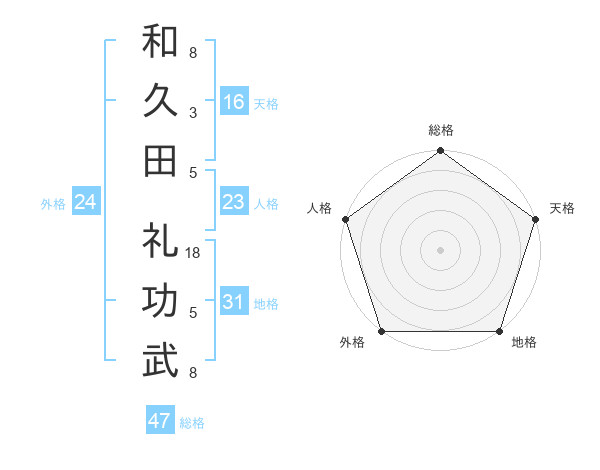 和久田 礼功武さんを姓名の画数から五運を鑑定