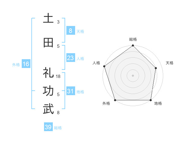 土田 礼功武さんを姓名の画数から五運を鑑定