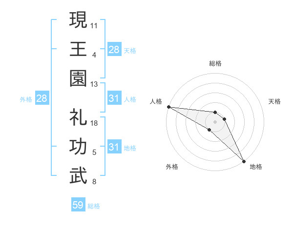現王園 礼功武さんを姓名の画数から五運を鑑定