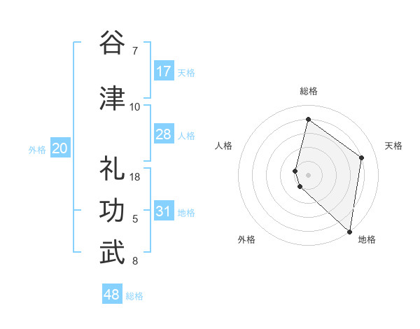 谷津 礼功武さんを姓名の画数から五運を鑑定