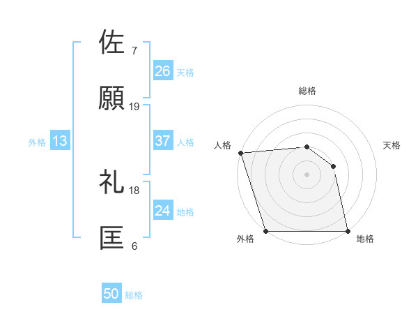 佐願 礼匡さんの総格は50画の2点!