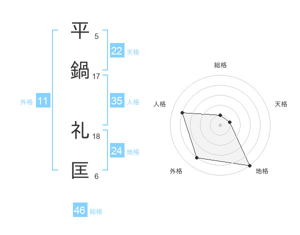 平鍋 礼匡さんの総格は46画の1点!