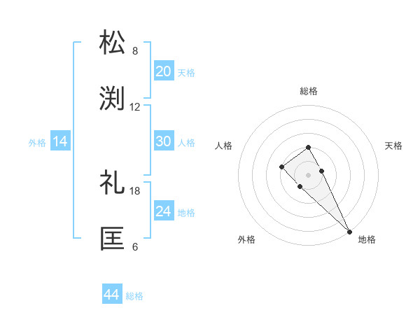 松渕 礼匡さんの総格は44画の2点!
