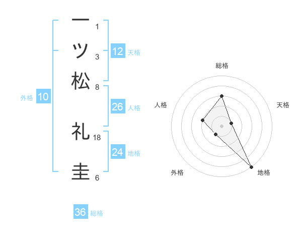一ツ松 礼圭さんの天格は12画の1点!