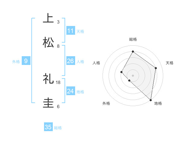 上松 礼圭さんの総格は35画の4点!