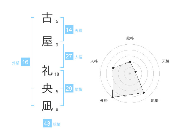 古屋 礼央凪さんを姓名の画数から五運を鑑定