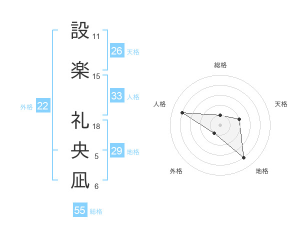設楽 礼央凪さんを姓名の画数から五運を鑑定