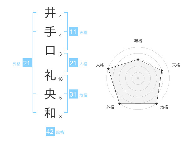 井手口 礼央和さんを姓名の画数から五運を鑑定