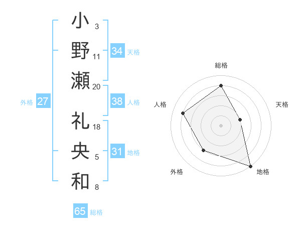 小野瀬 礼央和さんを姓名の画数から五運を鑑定