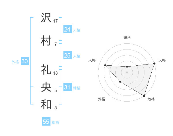 沢村 礼央和さんを姓名の画数から五運を鑑定