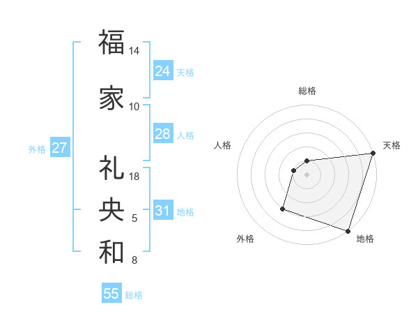 福家 礼央和さんを姓名の画数から五運を鑑定