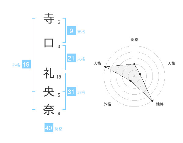 寺口 礼央奈さんを姓名の画数から五運を鑑定