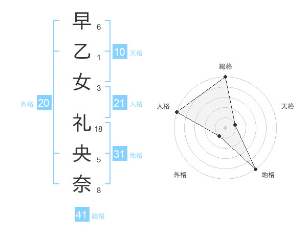 早乙女 礼央奈さんを姓名の画数から五運を鑑定