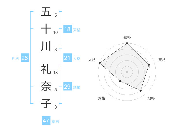 五十川 礼奈子さんの総格は47画の5点!