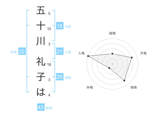 五十川 礼子はさんを姓名の画数から五運を鑑定