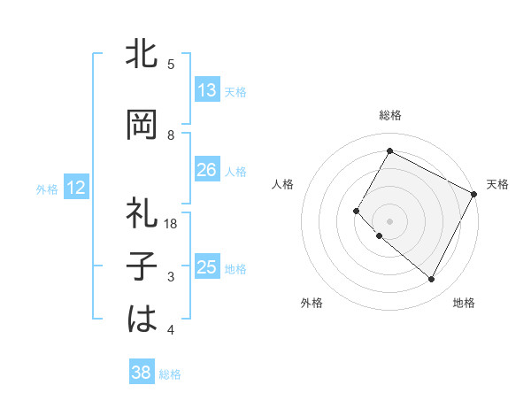 北岡 礼子はさんを姓名の画数から五運を鑑定