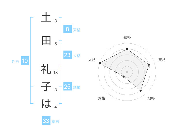 土田 礼子はさんの総格は33画の4点!