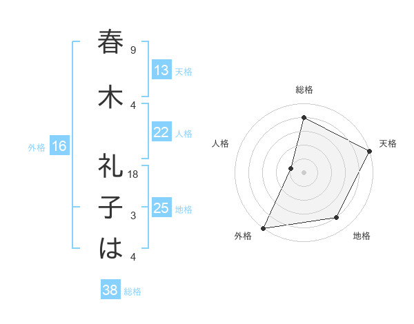 春木 礼子はさんの総格は38画の4点!