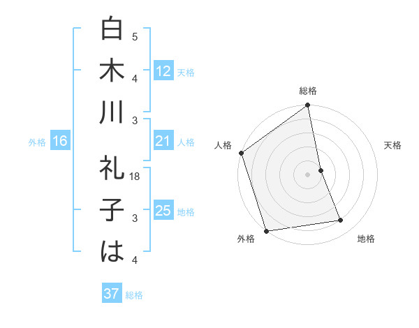 白木川 礼子はさんを姓名の画数から五運を鑑定