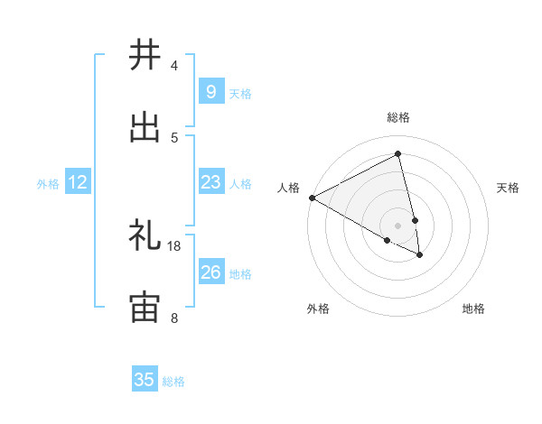 井出 礼宙さんの総格は35画の4点!