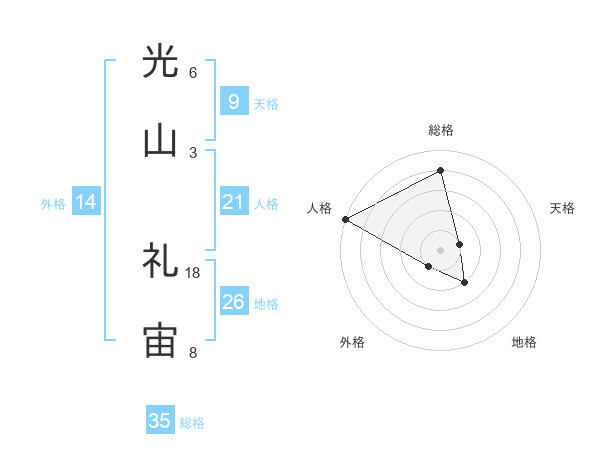 光山 礼宙さんを姓名の画数から五運を鑑定