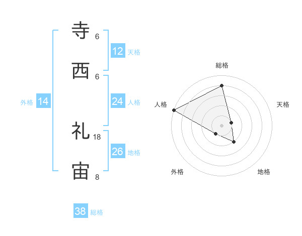 寺西 礼宙さんの総格は38画の4点!
