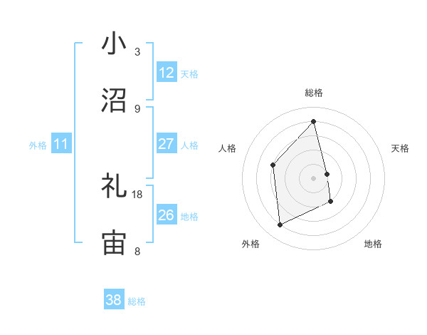 小沼 礼宙さんを姓名の画数から五運を鑑定