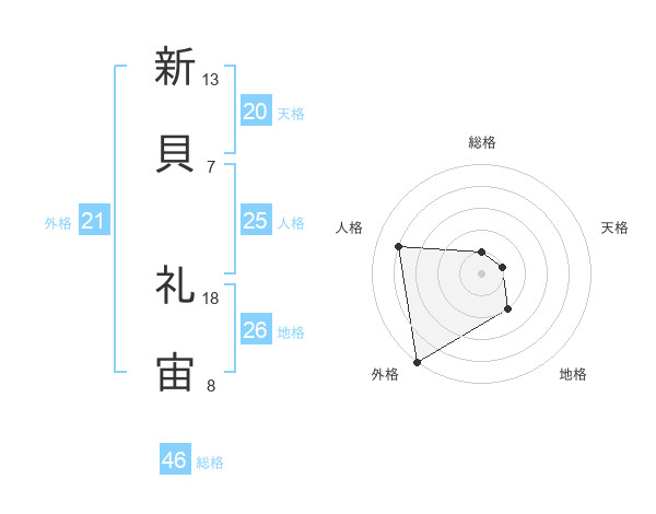 新貝 礼宙さんを姓名の画数から五運を鑑定