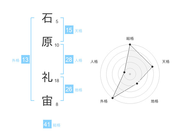 石原 礼宙さんの外格は13画の5点!