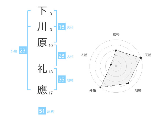 下川原 礼應さんを姓名の画数から五運を鑑定