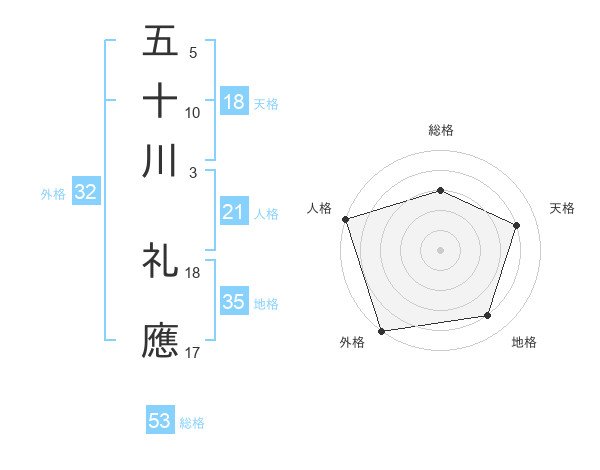 五十川 礼應さんを姓名の画数から五運を鑑定