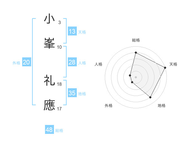小峯 礼應さんを姓名の画数から五運を鑑定