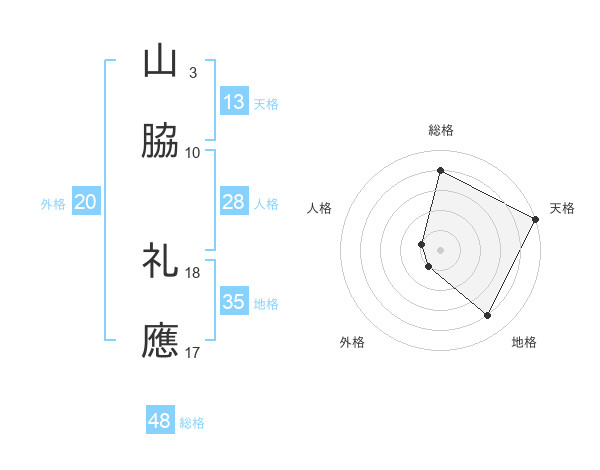 山脇 礼應さんの総格は48画の4点!