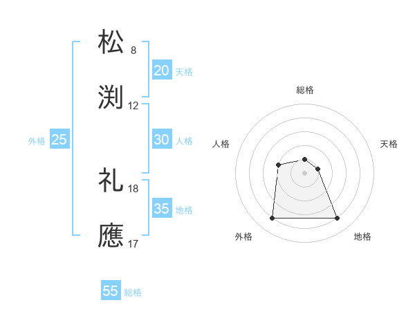 松渕 礼應さんを姓名の画数から五運を鑑定