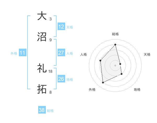 大沼 礼拓さんを姓名の画数から五運を鑑定