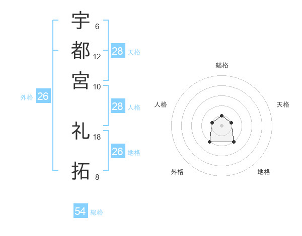 宇都宮 礼拓さんの総格は54画の1点
