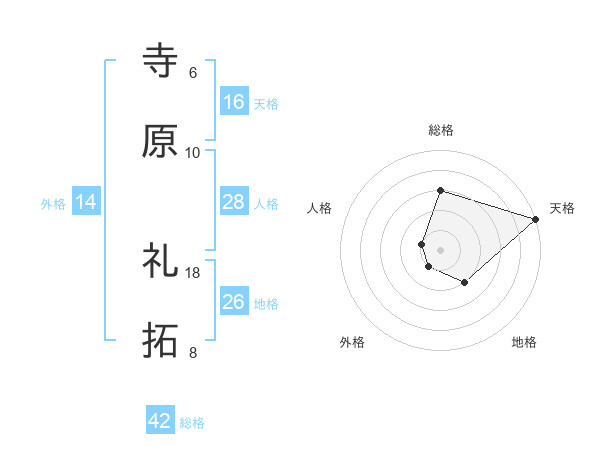 寺原 礼拓さんの天格は16画の5点!