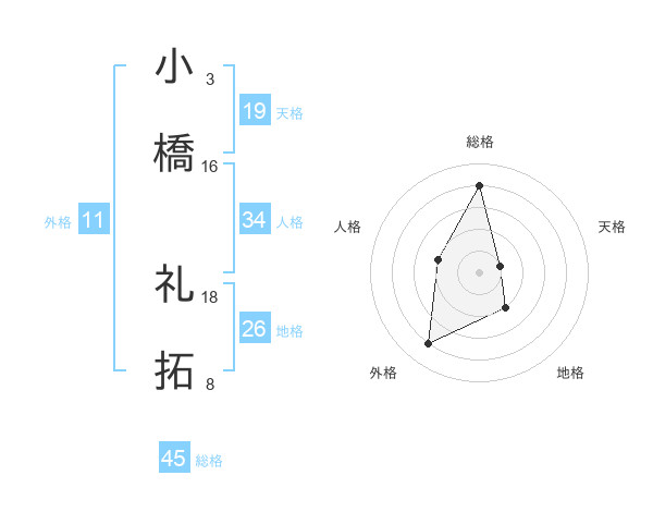 小橋 礼拓さんを姓名の画数から五運を鑑定