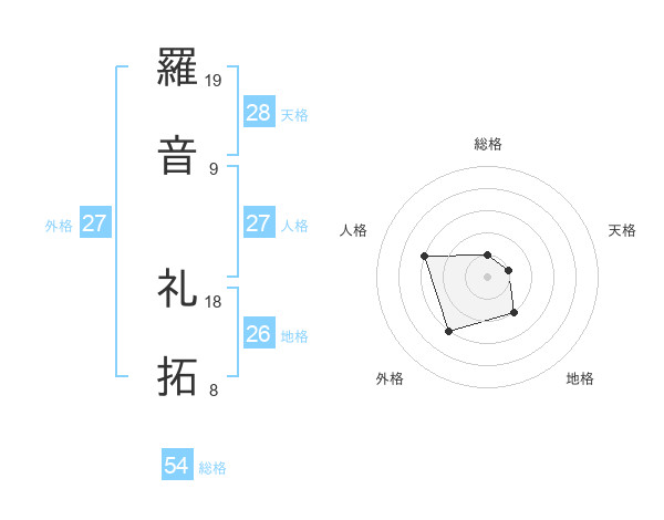 羅音 礼拓さんの外格は27画の3点!