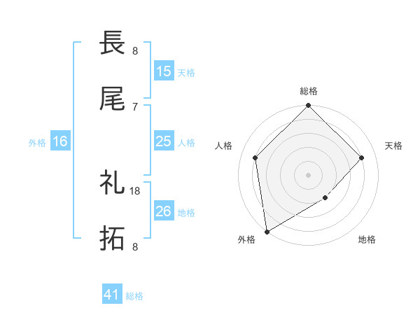 長尾 礼拓さんの総格は41画の5点!