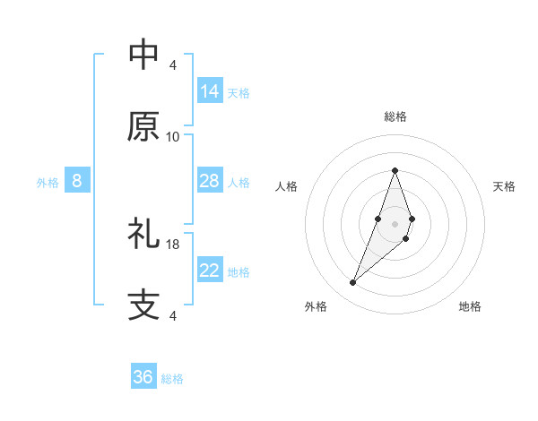 中原 礼支さんの天格は14画の1点!